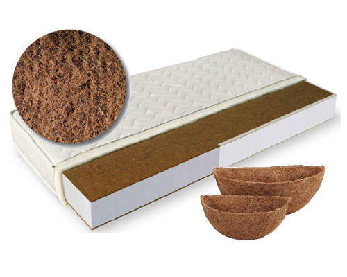 Кокосовите влакна са напълно разградими и екологични, вложките, които се изработват от кафяви влакна, се използват в матрачното производство, поради добрите си абсорбиращи качества и водоустойчивост, допринасят за по-добър ефект на циркулация на въздуха, гарантира здравина на конструкцията, запазвайки целостта на полиуретана, за по-голяма стабилност и допълнителна опора на гърба, придават специфична твърдост на матрака и различен тип комфорт.